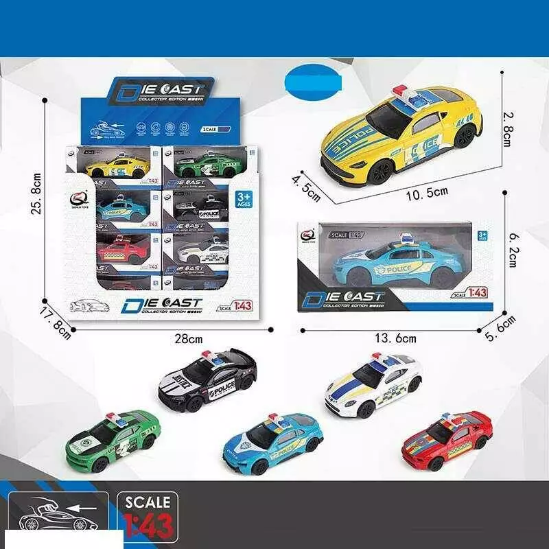 Набір машин QZ 43 K (16/2) ЦІНА ЗА 24 ШТУКИ В БЛОЦІ, 6 видів, "Поліція", металопластик, інерція