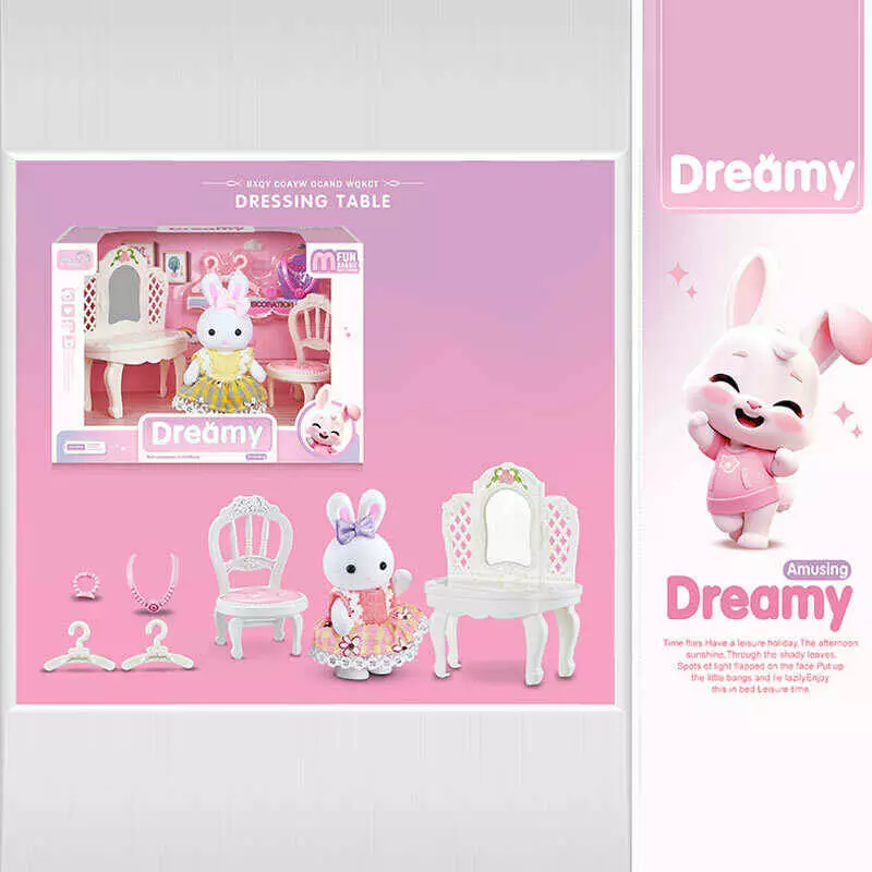Набір меблів 6621 A-1 (96/2) флоксова фігурка, висота: 9 см, трюмо, стілець, аксесуари, в коробці