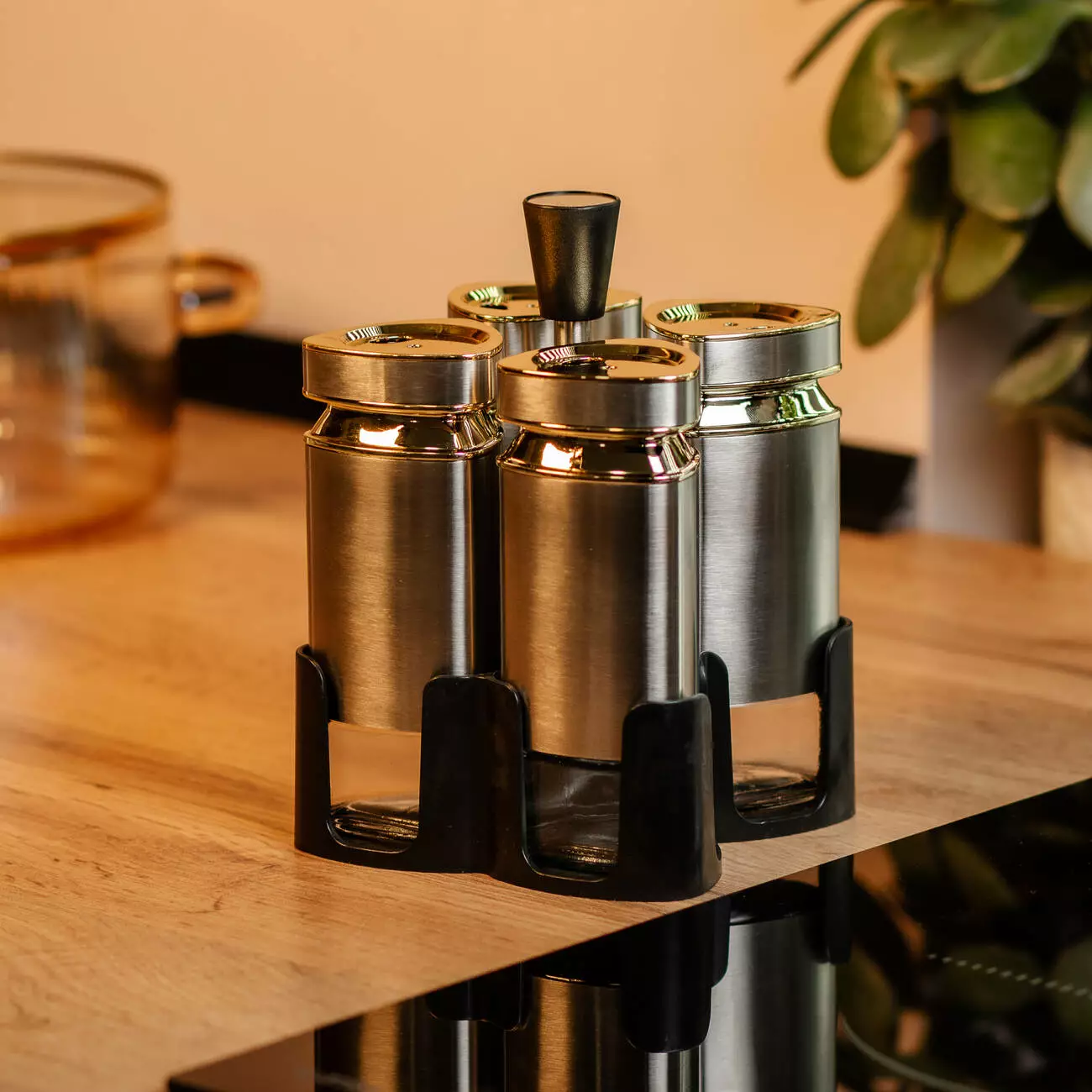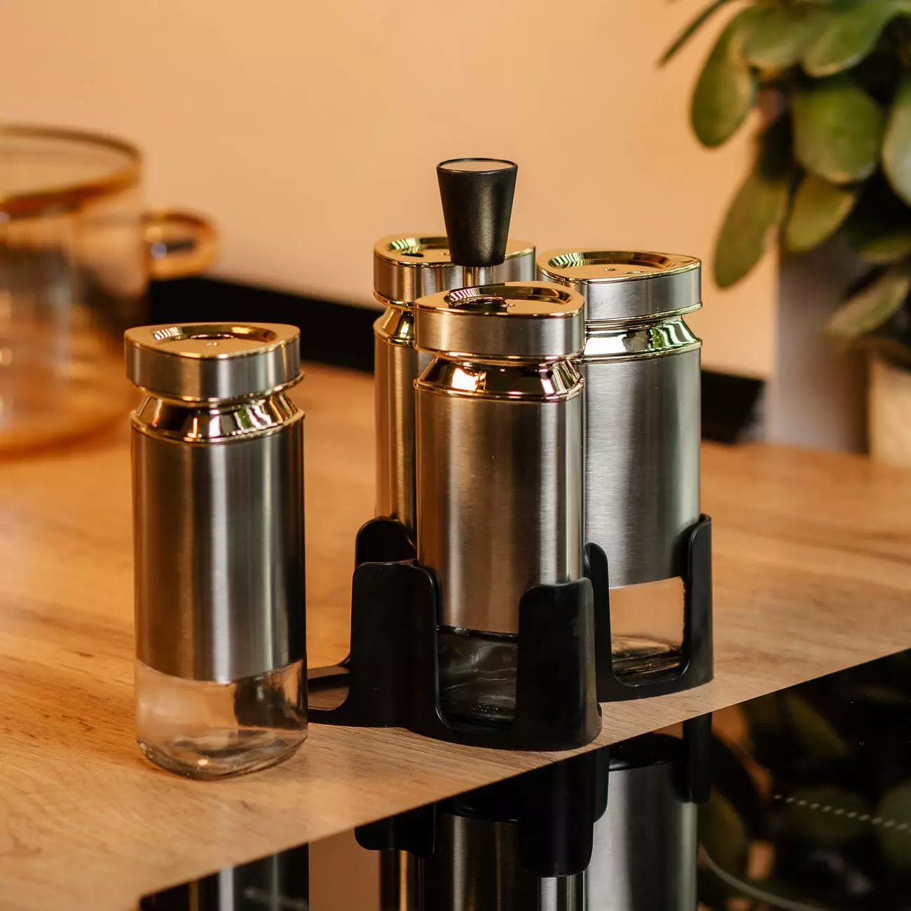Набір для спецій з чотирьох баночок зачаровує своєю елегантністю