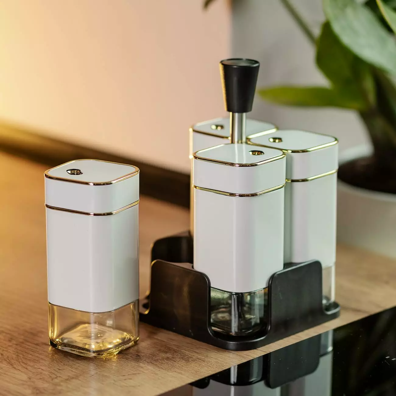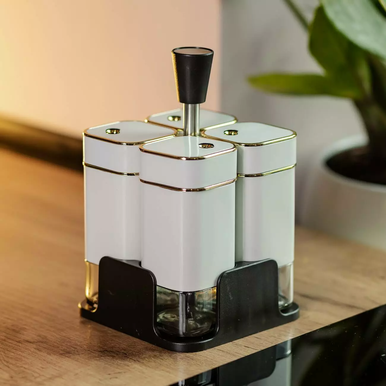 Набір ємностей для спецій на підставці складається з чотирьох
