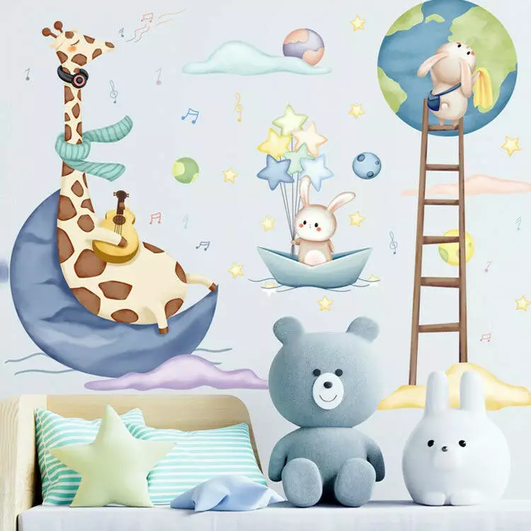 зображенням жирафа, що співає на місяці, і зайчиків у дивовижних