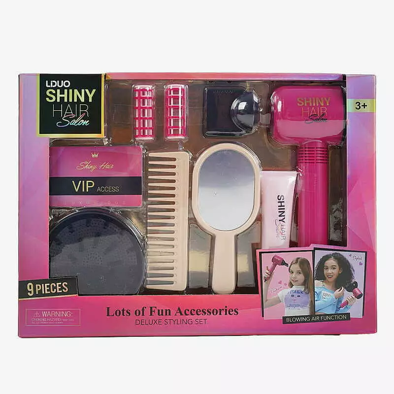 Набір перукаря 626002 (24) 9 аксесуарів, фен видуває повітря, 2 насадки, 2 бігуді, гребінець, люстерко у коробці
