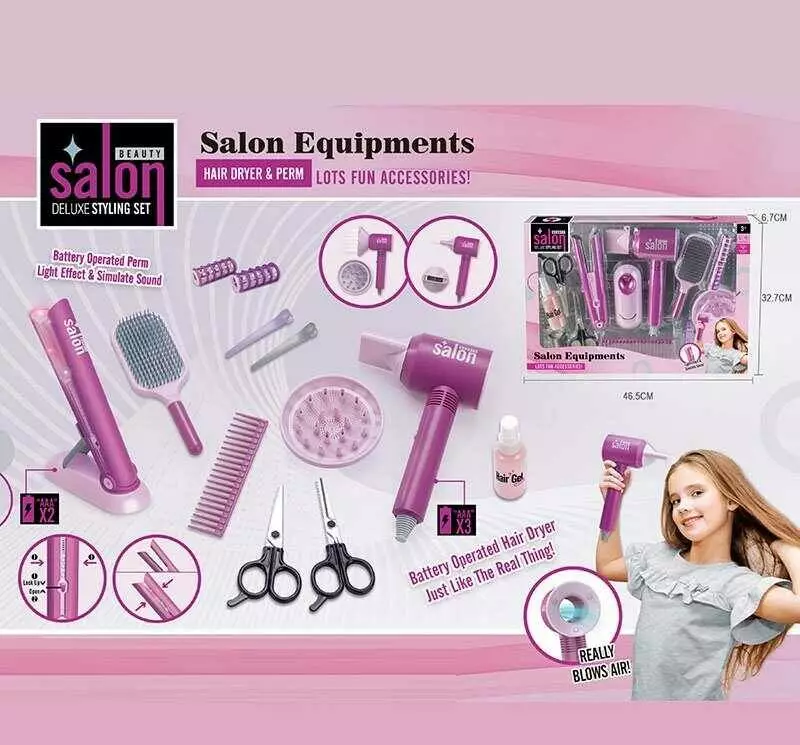Набір перукаря YLQ 089 (24/2) стайлер, звук, підсвітка, 2 заколки, 2 щітки для волосся, бігуді, баночка для спрею, ножниці, фен, насадка, в коробці