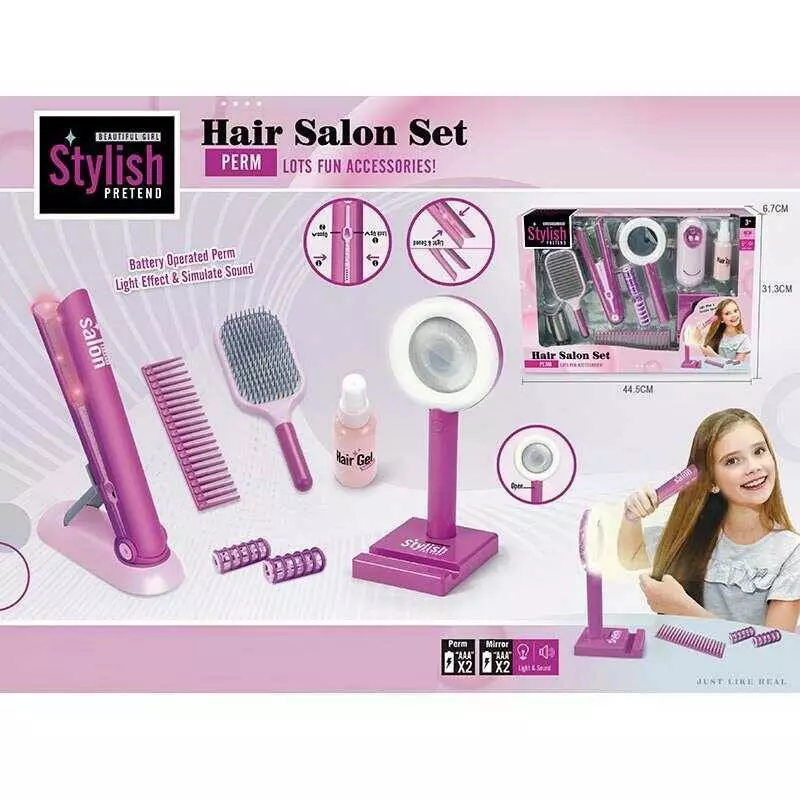 Набір перукаря YLQ 095 (24/2) стайлер, звук, підсвітка, бігуді, 2 щітки для волосся, баночка для спрею, дзеркало з підсвіткою, в коробці
