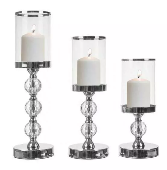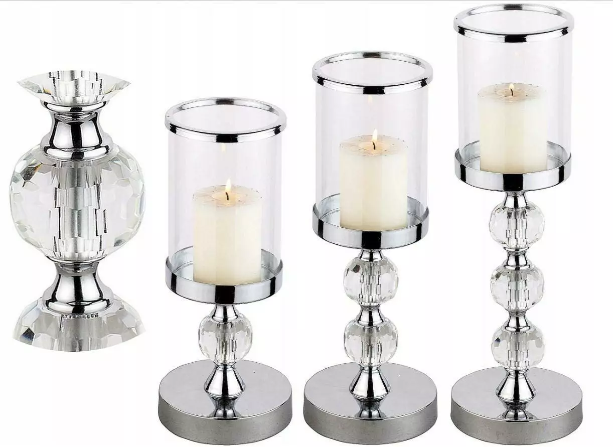 3 РІЗНИХ ВИСОТИ + КРИШТАЛЕВІ АКСЕСУАРИ - свічники на ніжці мають 3