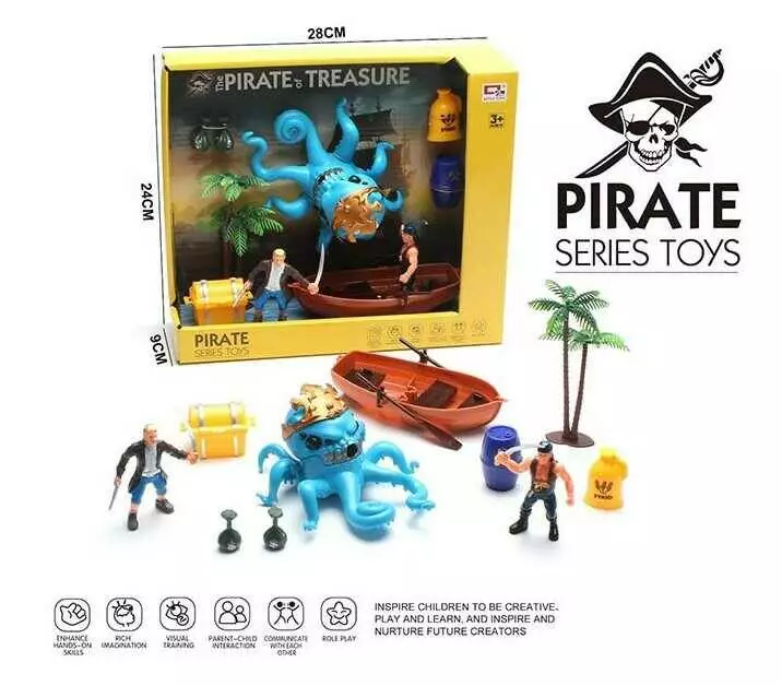 Набір піратів 0807-74 (36) восьминіг з підсвічуванням та парогенерацією, фігурки, човен, аксесуари, в коробці