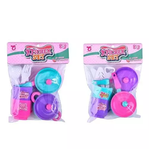 Фотография 1 товарной позиции интернет-магазина детских игрушек www.smarttoys.com.ua Набір посуду 315J чашки, сковорідка, вилка, ложка, ніж, каструля, 2 кольори, кул., 22-17-4 см.