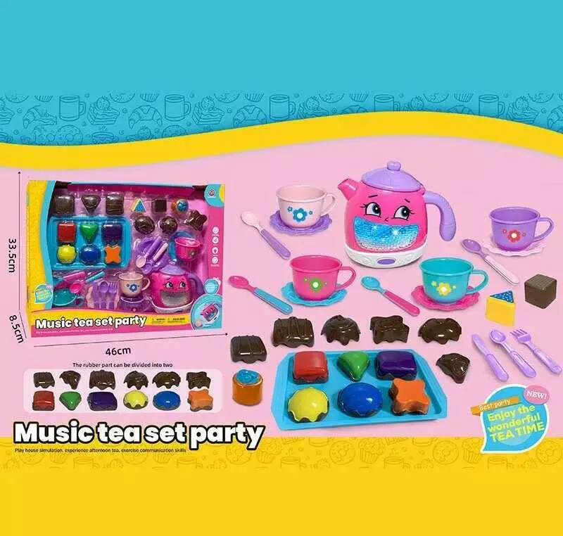 Набір посуду 3222 A (30) чайник, підсвічування, звуки, мелодії, датчики руху, на батарейках, посуд, солодощі, в коробці
