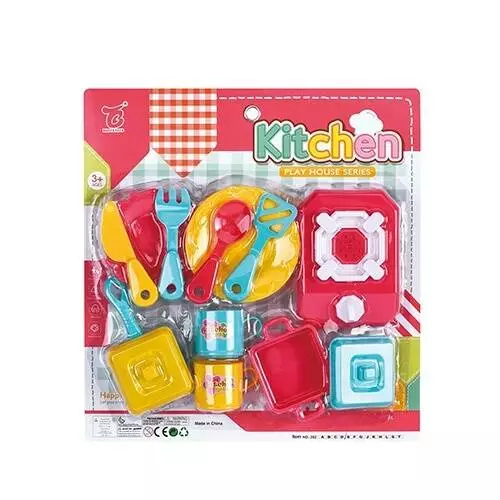 Набір посуду 352D каструля, сковорода, плита, тарілки, ложка, виделка, лист, 29,5-30,5-4,5 см.