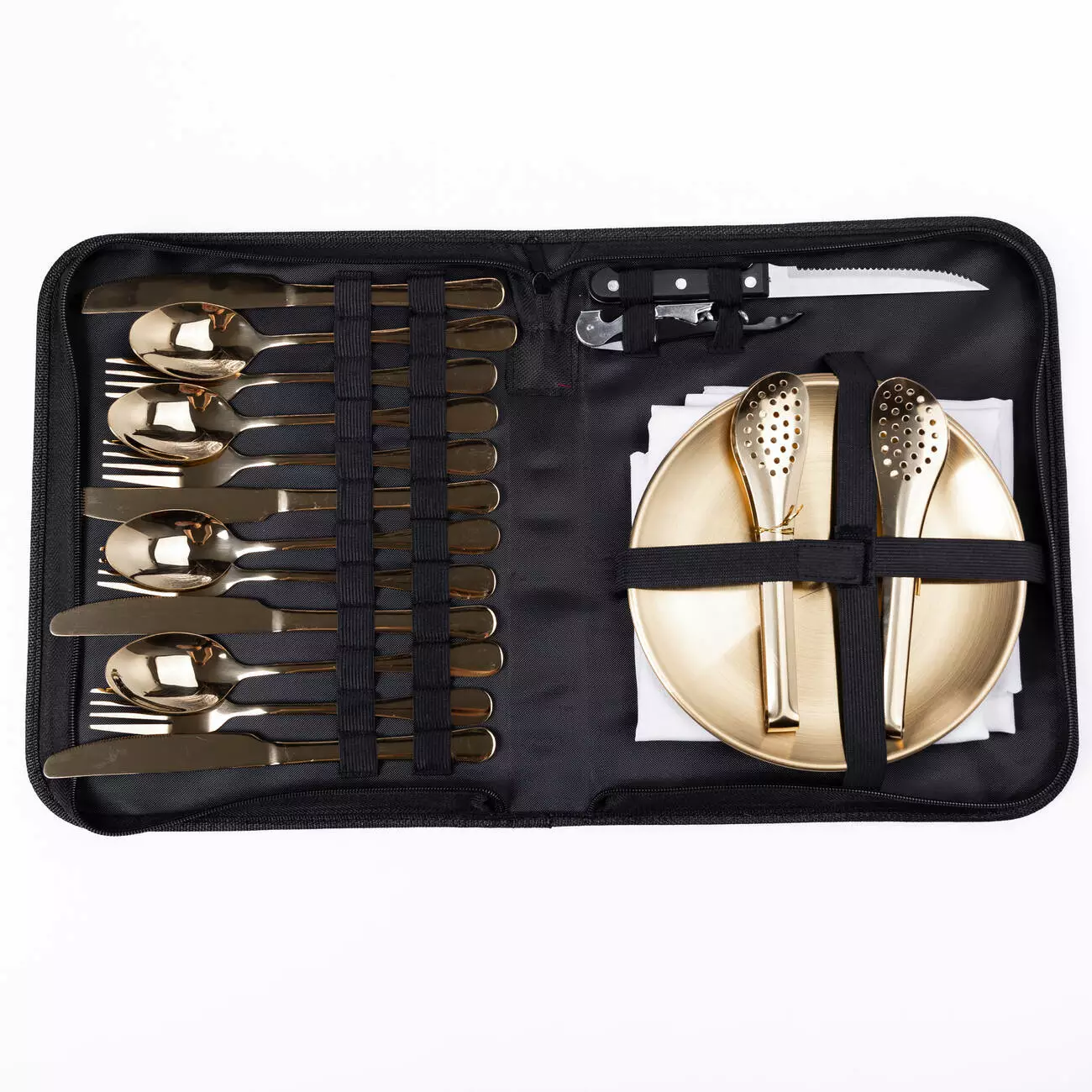 Набір посуду для пікніка на 4 персони 24 предмети, золото