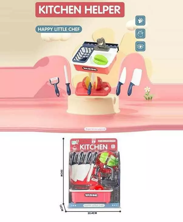 Набір посуду GJJ-H 77 Штрих=01478 (48/2) муляж мийки з краном, фрукт на липучці, ножі, дошка для нарізання, у слюді