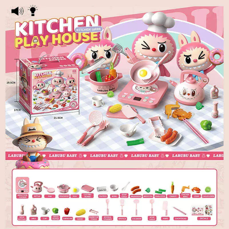 Набір посуду S 20-12 (48) плита, підсвічування, звуки, каструля, пательня, чайник, харчові продукти, дощечка, кухонне приладдя, наліпки, в коробці