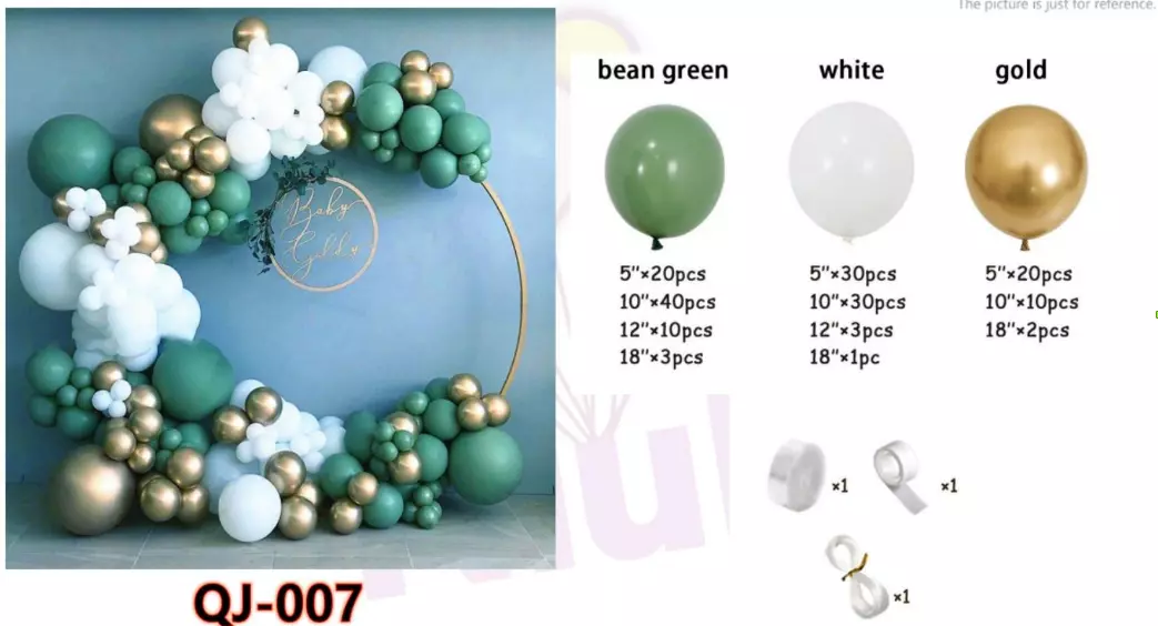 Набір латексних кульок включає три популярні кольори: зелений,