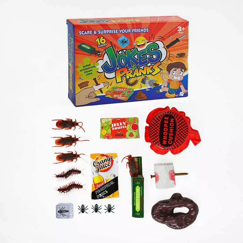 Набір приколів 388-2 (96/2) 16 елементів, муляжі, фігурки комах, фальшивий ніж, в коробці