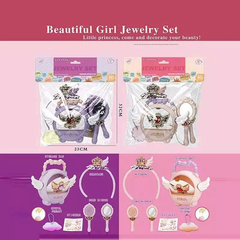 Набір прикрас 608 A 25 (96) 2 види, прикраси, скринька, обруч, дзеркальце, щітка для волосся, в пакеті