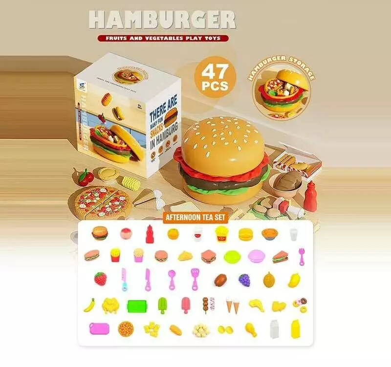 Головна > Каталог > Дитячі товари > Дитячий посуд > Набір продуктів 108-34 A (24/2) 47 елементів, великий бургер-бокс, продукти на липучках, таця, дошка для нарізання, ножичок, стаканчики, в коробці оптом