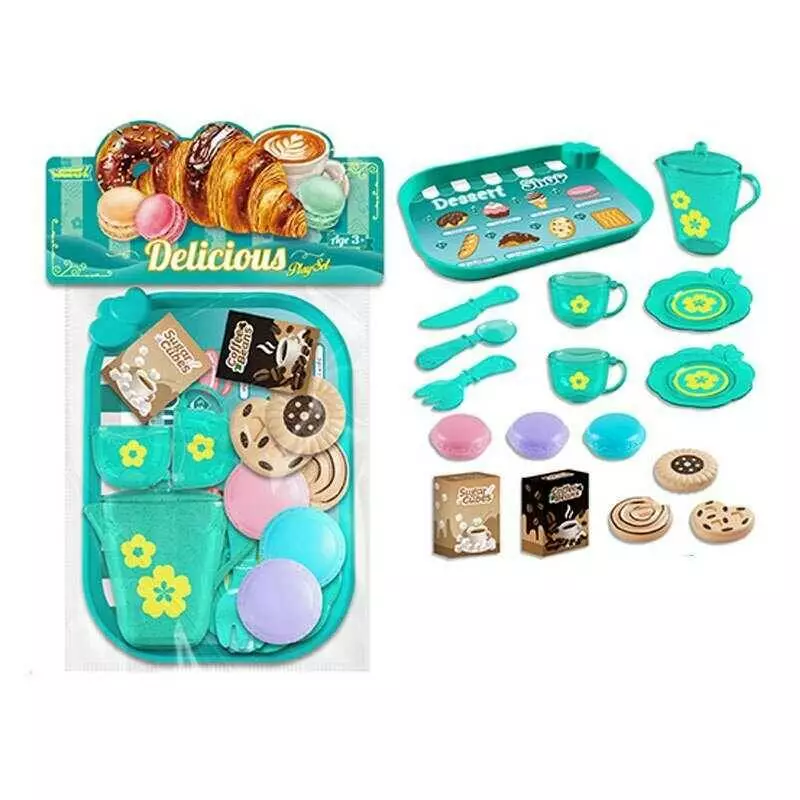 Головна > Каталог > Дитячі товари > Дитячий посуд > Набір продуктів 99015 (120/2) таця, 2 чашки, 2 блюдця, чайничок, ніж, ложка, вилка, печиво, коробочки з кавою і цукром, в пакеті оптом