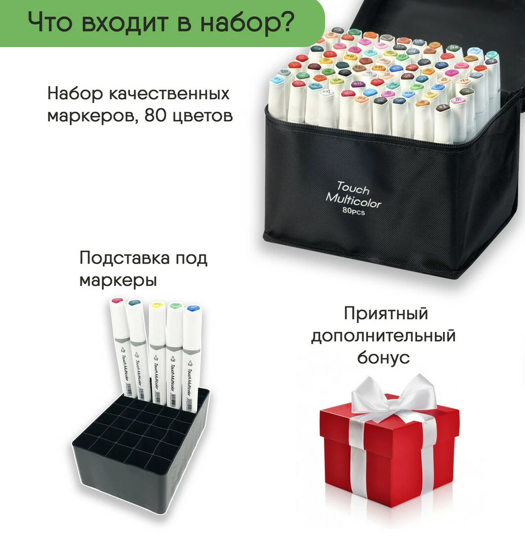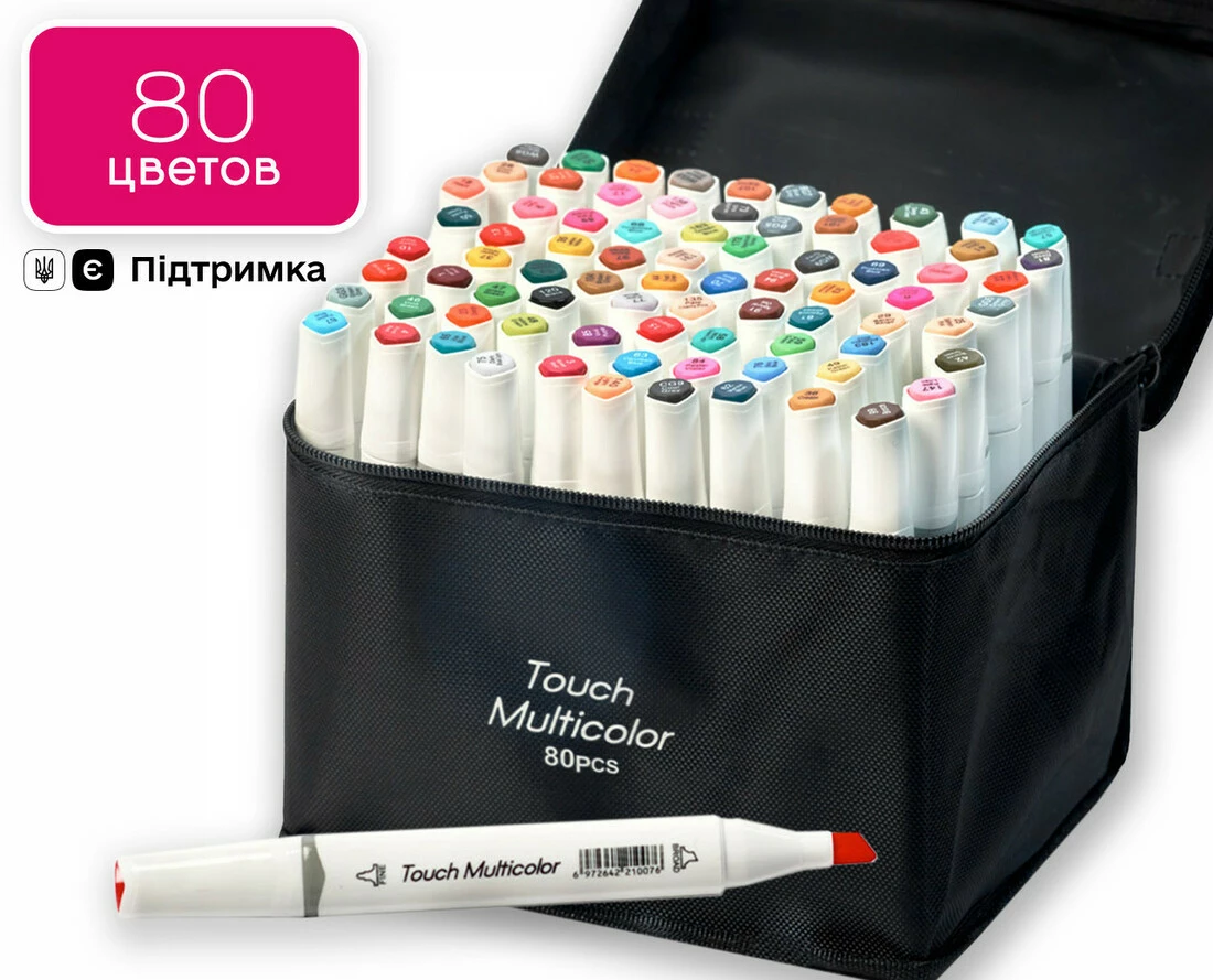 У наборі 80 маркерів різних кольорів.