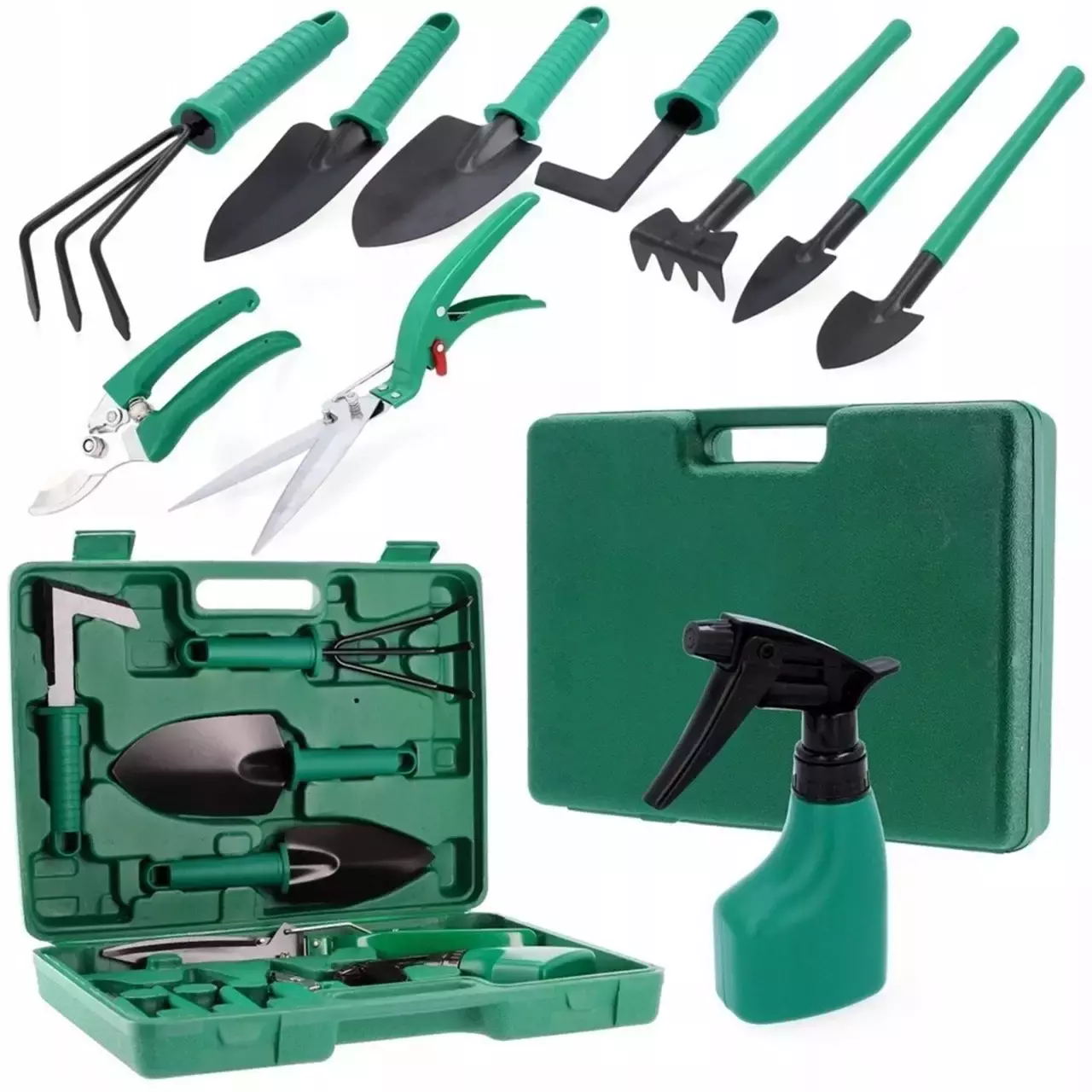 Цей набір чудово підходить для роботи з квітами, розсадою, декоративними рослинами, клумбами та невеликими грядками. З його допомогою можна легко підготувати ґрунт, пересадити рослини, обрізати кущі або видалити бур'яни. Завдяки зручній валізі всі інструменти завжди перебувають у порядку та не губляться. Компактність, функціональність і гарна комплектація роблять цей набір чудовим вибором для дачі, саду або як практичний подарунок для прихильників садівництва.