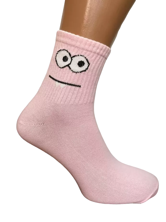 Набір шкарпеток молодіжних, середньої висоти, в наборі 2 пари. з яскравим малюнком в асортименті. Яскравий малюнок додає шкарпеткам індивідуальності. Виготовлені з високоякісної бавовни на власному виробництві. Білого   та рожевого кольору , розмір  25-27(38-42). В упаковці 4 набори.