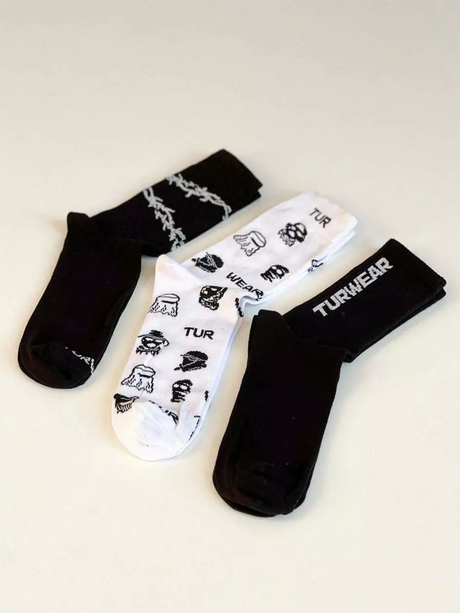 В наборі 3 пари шкарпеток: дві чорного кольору і одна білого (всі з