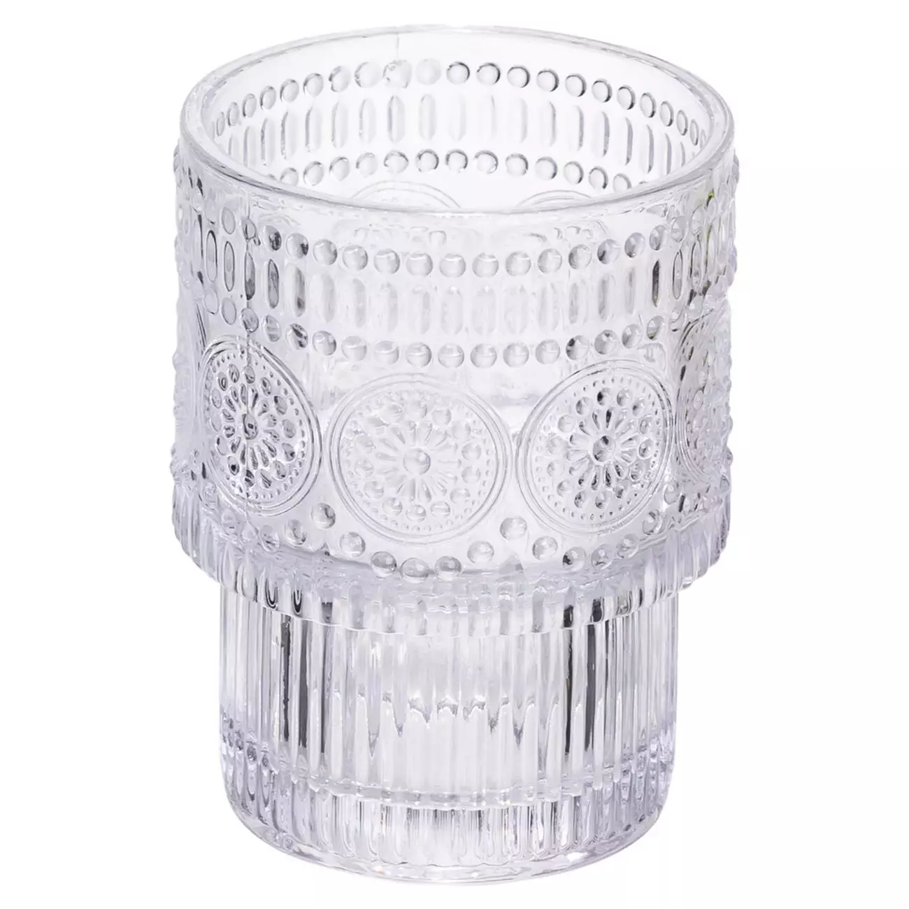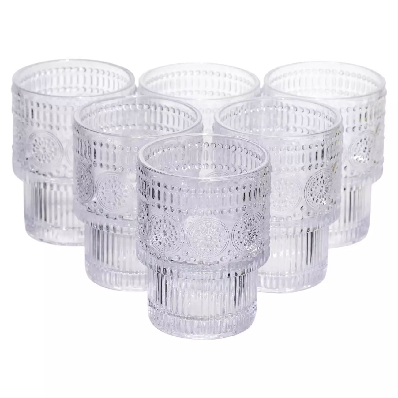 Набір із 6 прозорих склянок об'ємом 200 мл поєднує функціональність та декоративність. Унікальний рельєфний візерунок створює ефект ручної роботи та гарно грає на світлі, а товсте скло гарантує довговічність. Ідеальний вибір для щоденного користування та сімейних урочистостей - зручно сервірувати стіл, поєднувати з іншим скляним сервізом або використовувати як подарунок. Склянки мають особливу форму, що дозволяє складати їх один в один, заощаджуючи місце при зберіганні.