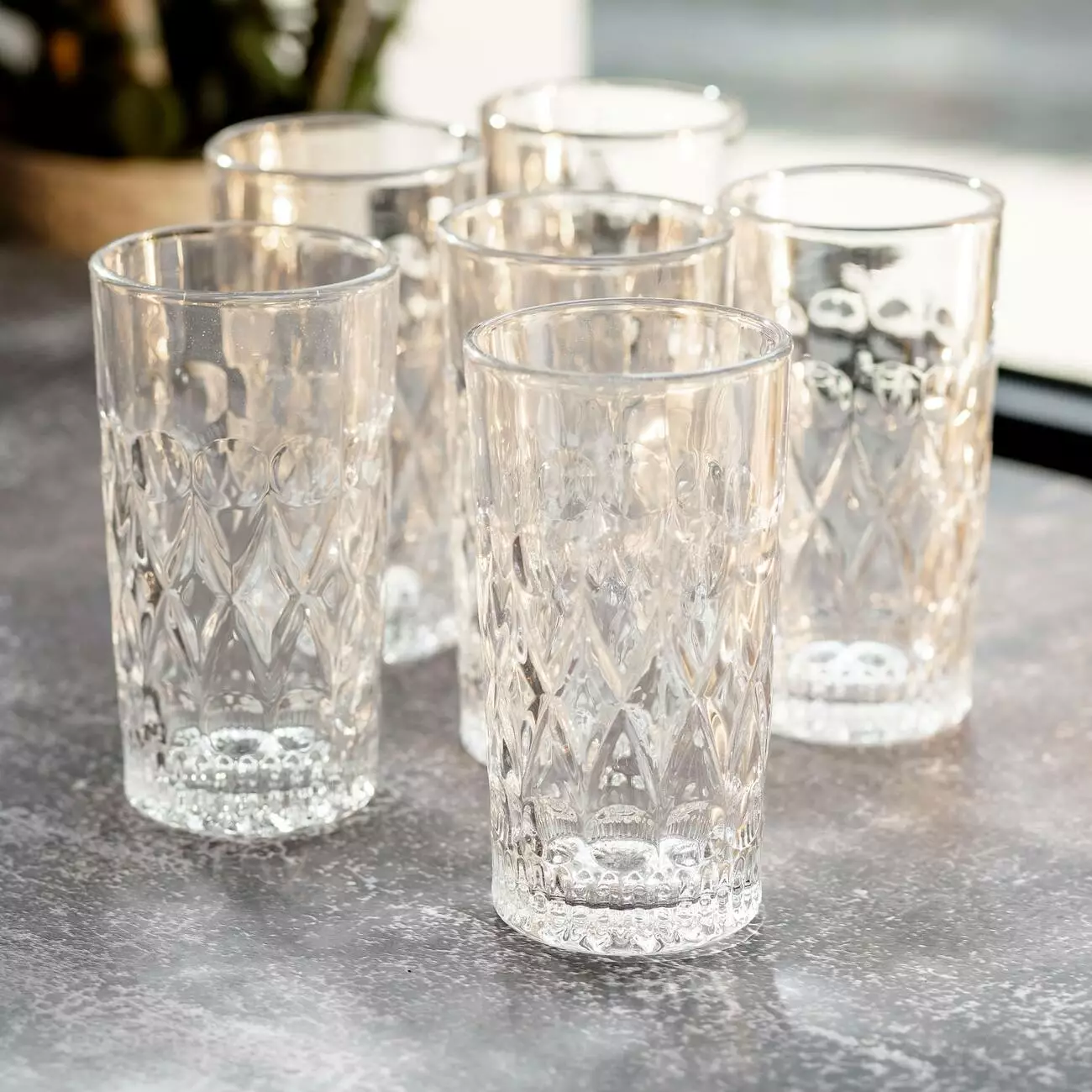 Набір складається з шести гранованих склянок, виготовлених із