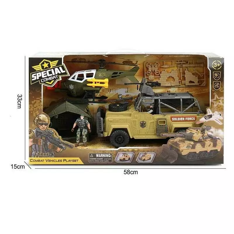 Головна > Каталог > Іграшки > Іграшкові машинки > Набір військової техніки G 3109-57 (12) гелікоптер, машина, 2 фігурки військових, зброя, намет, в коробці оптом