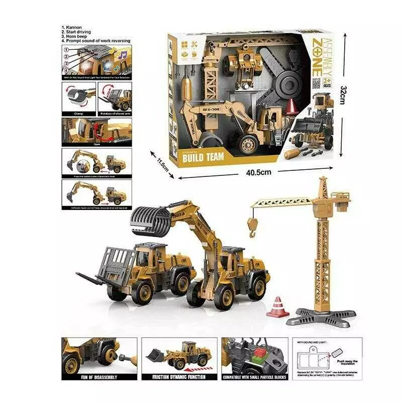 Набір спецтехніки YW 9101 C (18/2) підсвічування, звуки, інерційний механізм, рухливі елементи, інструменти, функціональний кран, в коробці