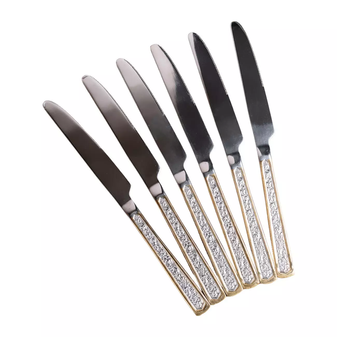 Набір столових ножів із 6 штук із фактурою, хром із золотом – це