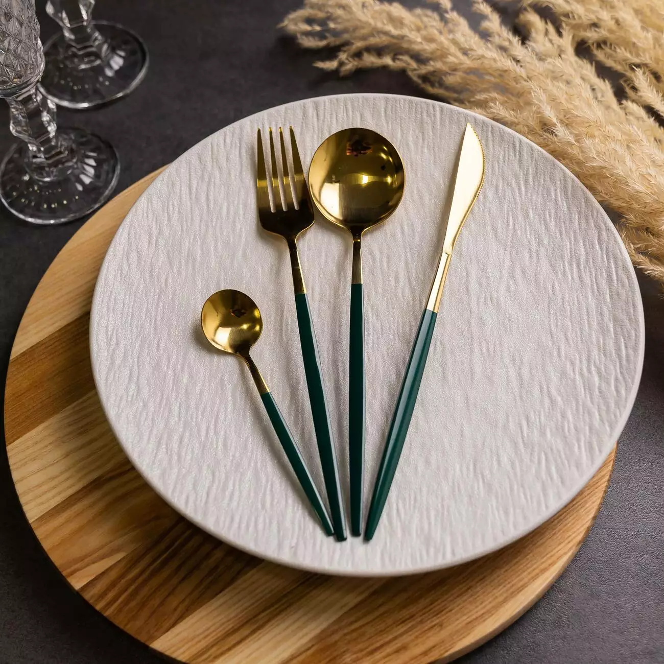 входять столові ложки, чайні ложки, столові виделки та ножі – по 6