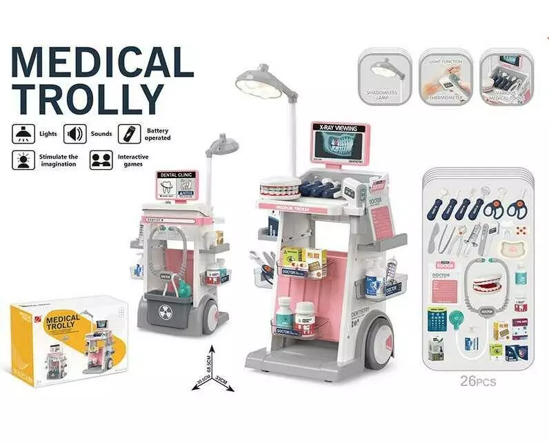 Набір стоматолога 660-98 (12) розмір: 33х30,5х68,5 см, 26 елементів, термометр, безтіньова лампа, підсвічування, звук, медичні інструменти, в коробці