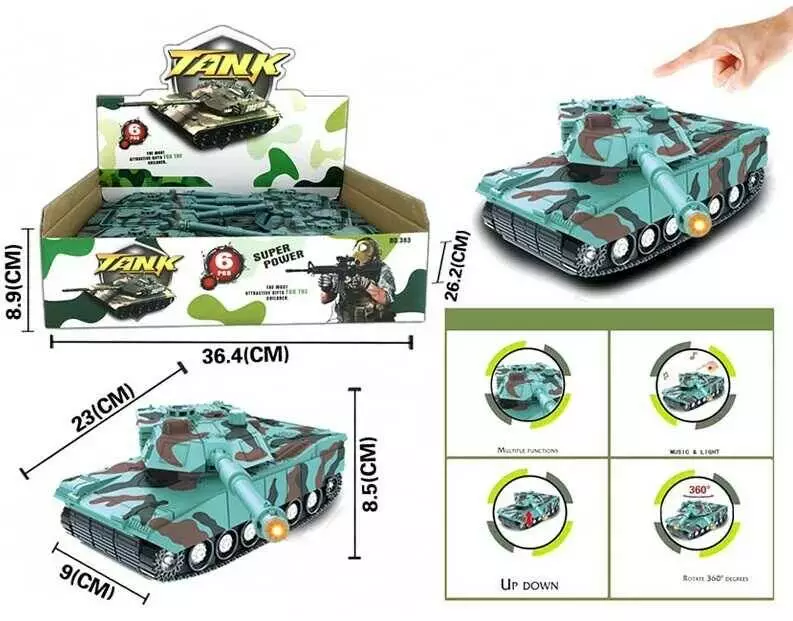 Набір танків 383-22 E (24/2) ЦІНА ЗА 6 ШТУК У БЛОЦІ, підсвічування, звуки, тріскачка, інерція