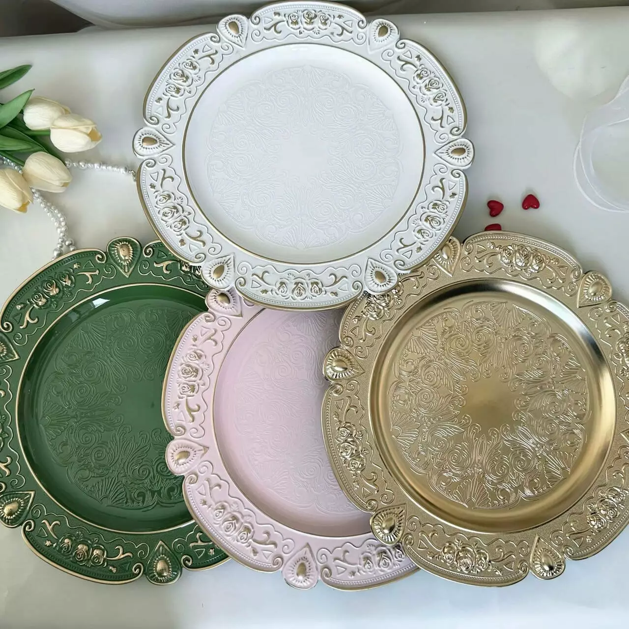 Набір із двох елегантних пластикових тарілок діаметром 33 см з