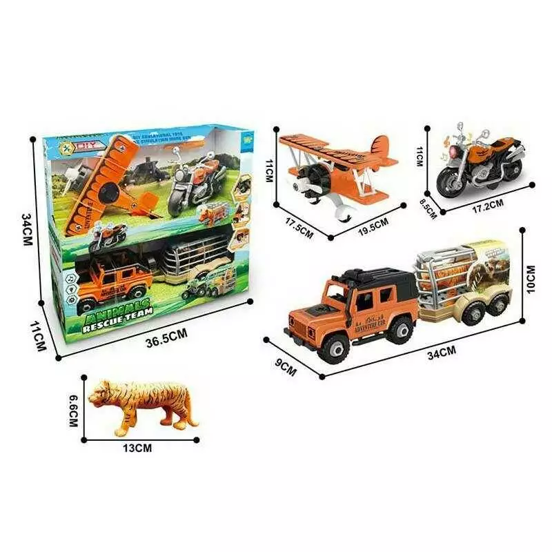 Набір техніки MY 3606-1 (24) звуки, підсвічування, інерційний механізм, мотоцикл, джип, літак, причіп, розбирається, викрутка, в коробці