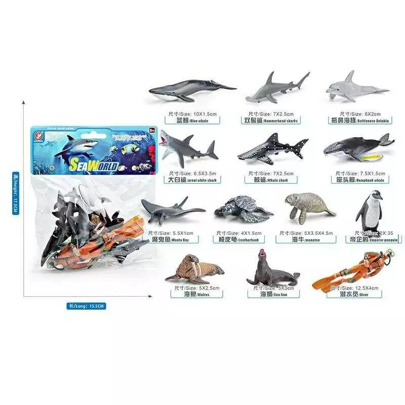 Набір тварин YJ 802 D (144) 12 фігурок морських жителів, 1 фігурка аквалангіста, в коробці