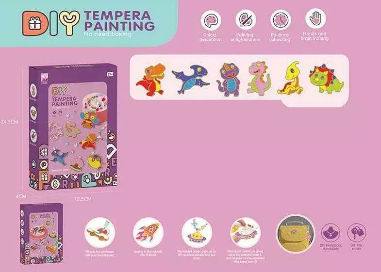 Набір творчості 338-1040 /1041/1042 (96/2) "Tempera Painting", 3 види, 4 тюбика краски, намистини, ланцюжки, фігурки, у коробці