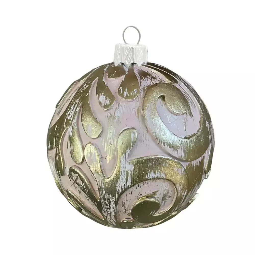 Набір ялинкових іграшок Вінтаж 2 штуки по 8 см із золотою поталлю, пудра