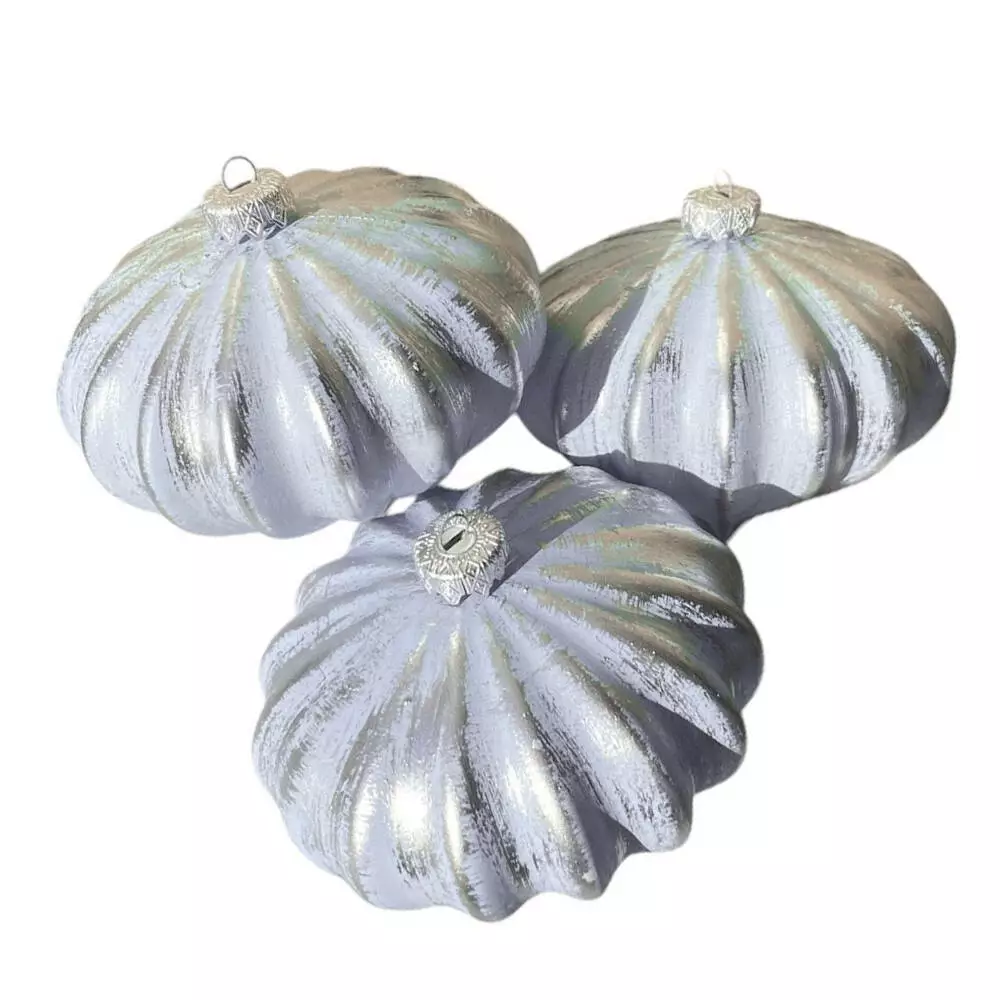 Набір ялинкових іграшок Зефір 3 штуки по 12 см зі срібною поталлю, білий