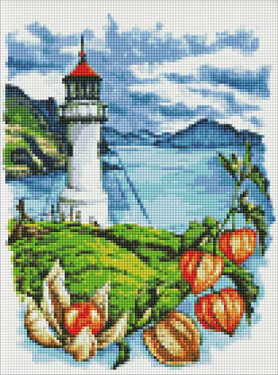 Набір з алмазною мозаїкою без підрамника "Маяк з фізалісами" 30х40см