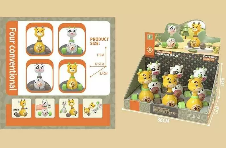 Набір заводних іграшок HY 719 (16) жирафа, корова, брязкання, ЦІНА ЗА 6 ШТУК В БЛОЦІ