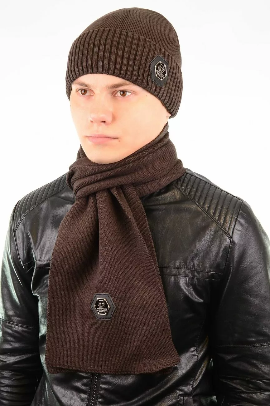 Однотонный мужской набор - состоит из шарфа и стильной шапки.