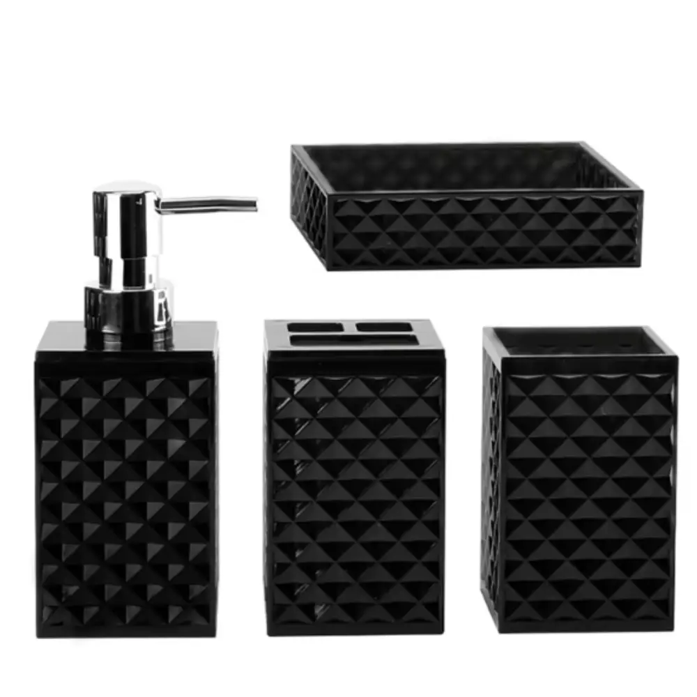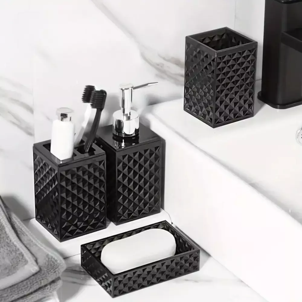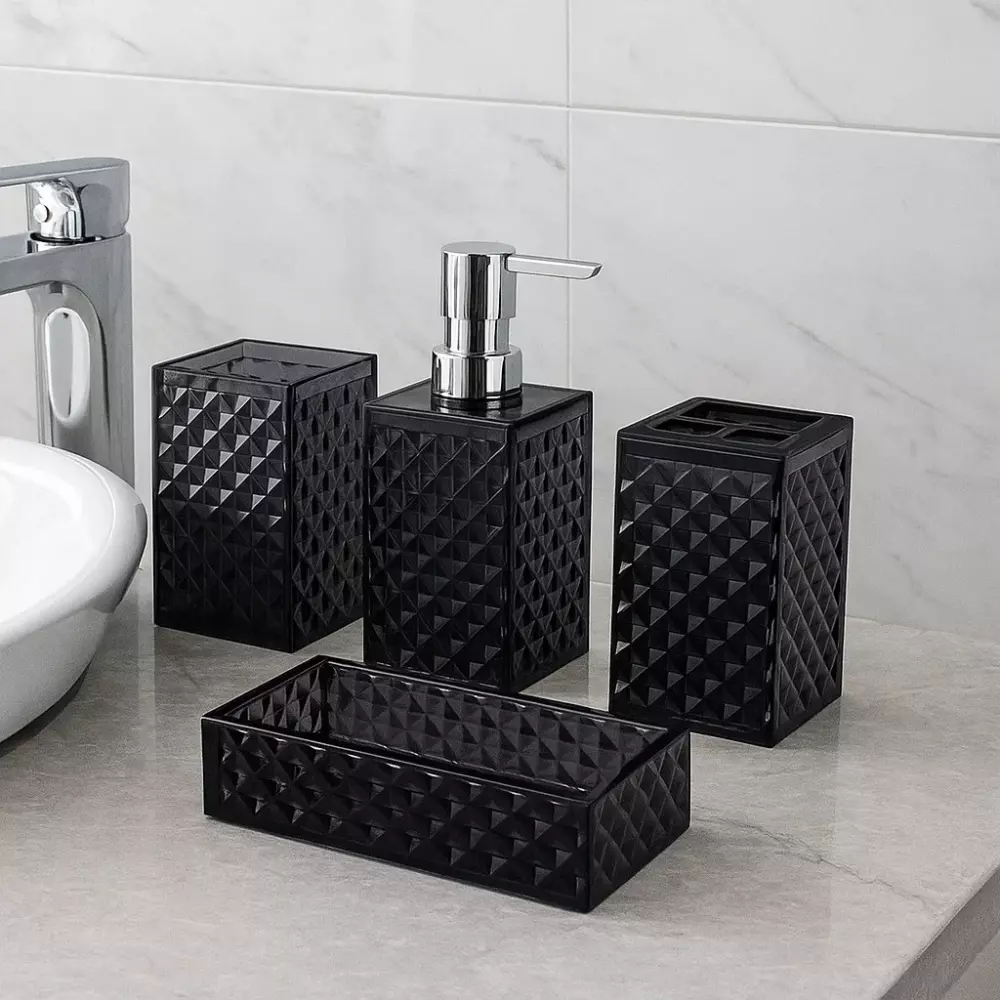 Стильний набір аксесуарів для ванної виконаний з міцного акрилу.