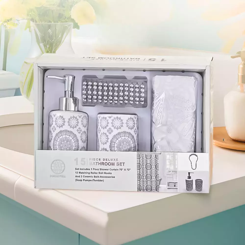 Набор 4 в 1 для ванной комнаты включает в себя шторку для душа,