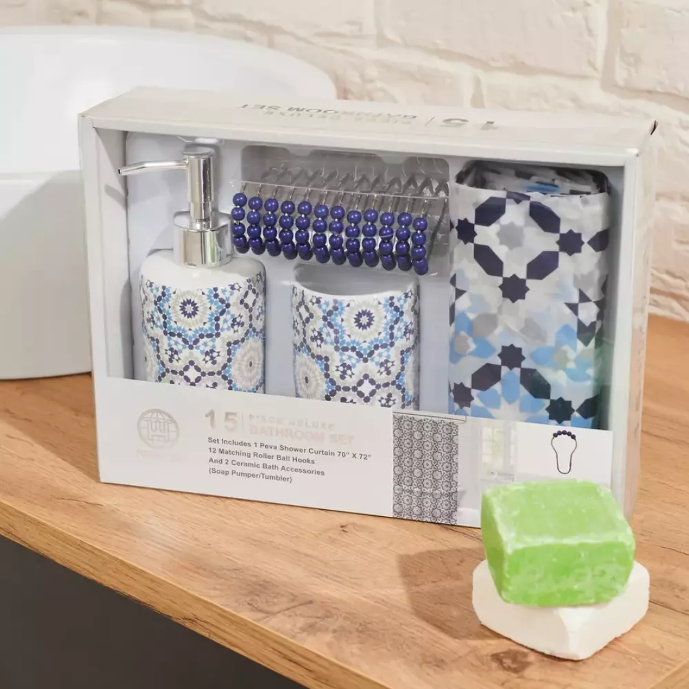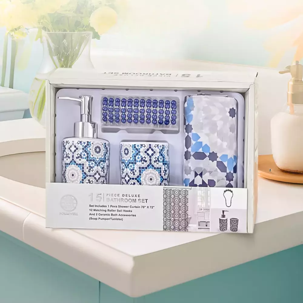 Набор 4 в 1 для ванной комнаты включает в себя шторку для душа,