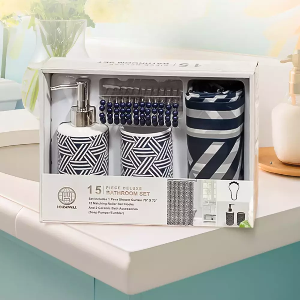 Набор 4 в 1 для ванной комнаты включает в себя шторку для душа,