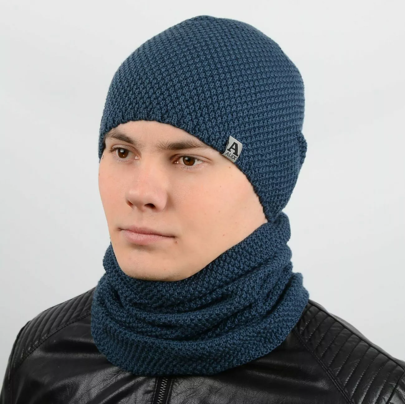 Стильный мужской набор - состоит из шарфа-хомута и теплой шапки.