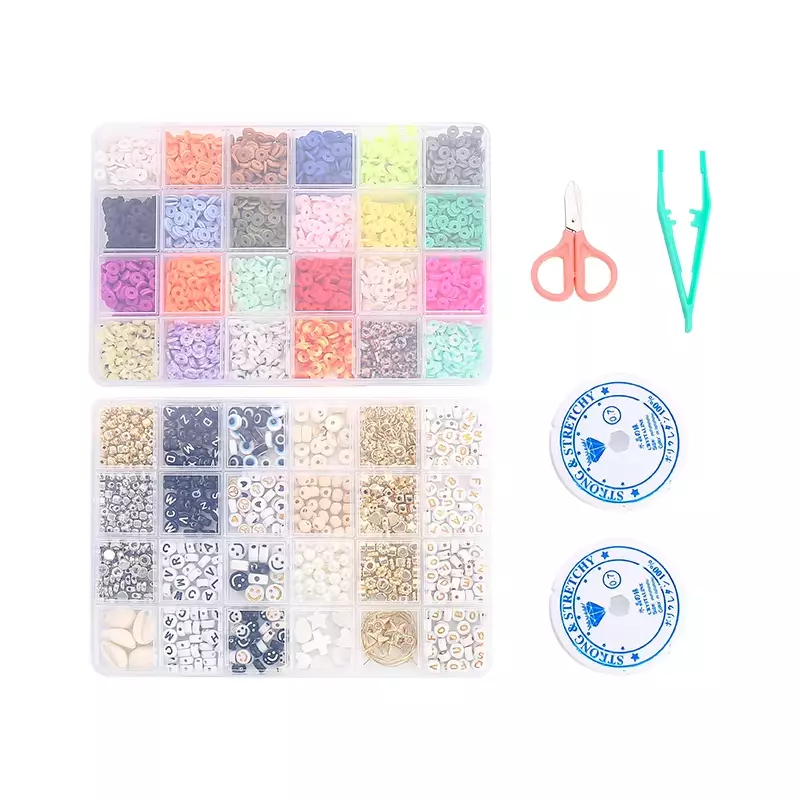 Набор бисера 48 видов, ножницы, пинцет, резинка