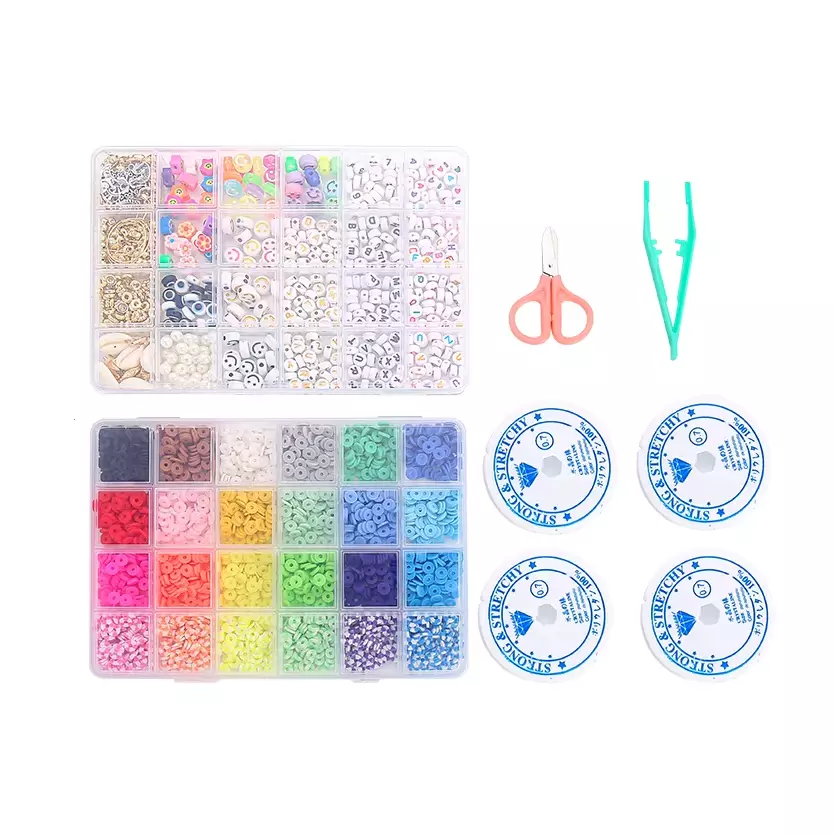 Набор бисера 48 видов, ножницы, пинцет, резинка