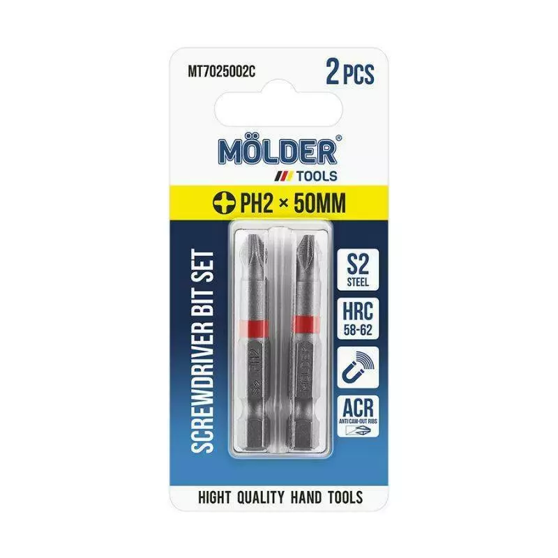 Набор бит крестовые PH2x50мм, 2шт, блистер, цв. марк. MOLDER (MT7025002C)